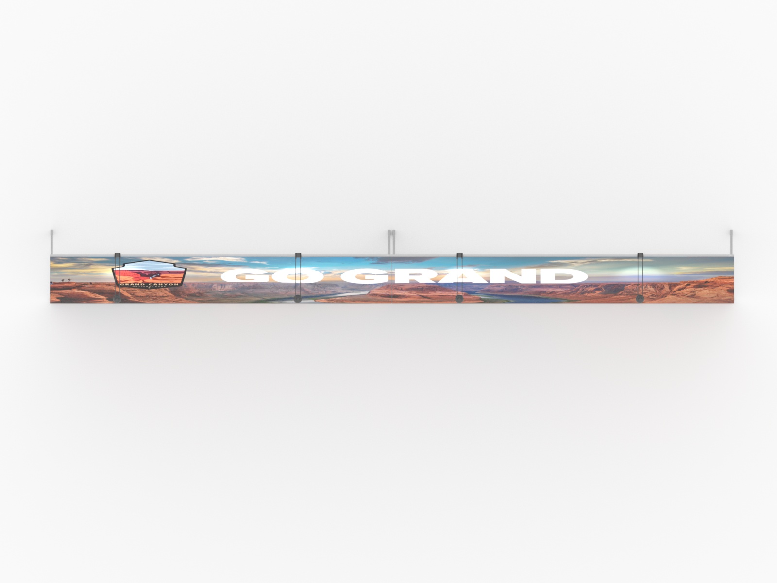 Tension fabric graphics attach to a frame so the fabric is taut edge-to-edge, creating “tension.” Typically, the graphic has Velcro hook sewn along the border, usually top and bottom, and attaches to Velcro loop on the frame. A silicone bead or welting can also be sewn to the edge of the tension fabric graphic. Those are referred to as Silicone Edge Graphics(SEG).
