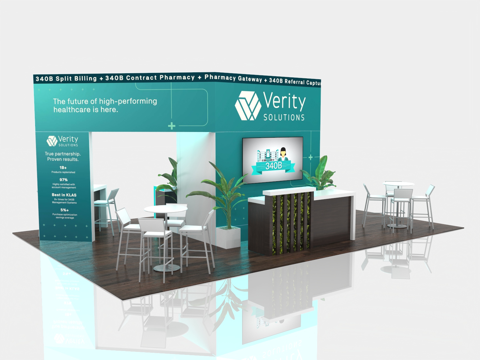 Island exhibits are displays bordering 3-4 aisles, with the smallest starting at 20’ x 20’. Inline exhibits, by contrast, typically border 1 or 2 aisles and are usually 10’ x 10’ or 10’ x 20’. Yes and no. It depends on your island and inline design requirements. Most of the time those are close enough for a seamless reconfiguration.