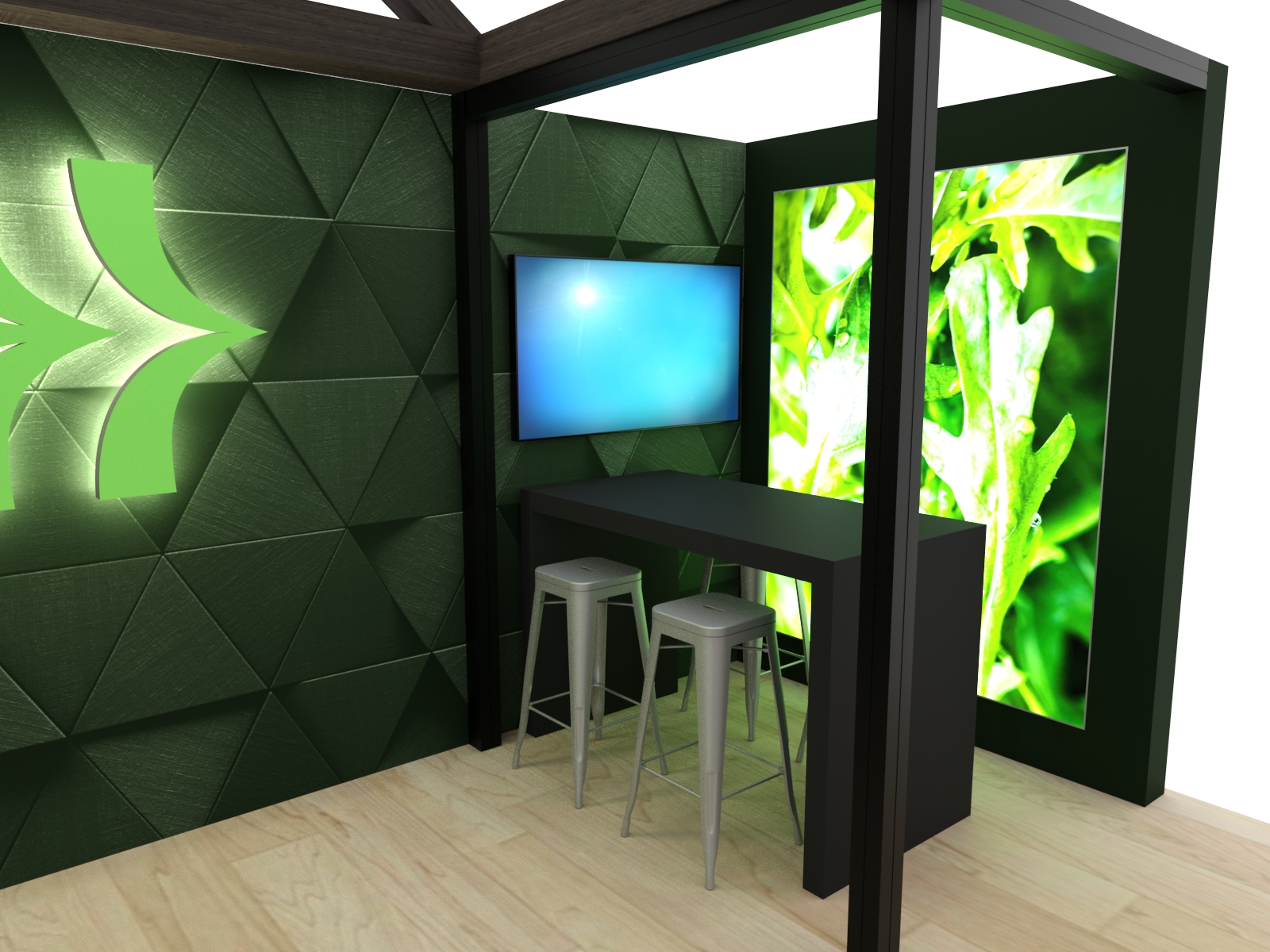 • (2) Half Walls with Black Powder-coated Recycled Aluminum Extrusion and Sustainable Infill Graphics